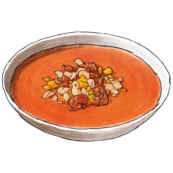 Salmorejo delicioso al estilo cordobés. Disponible según temporada.